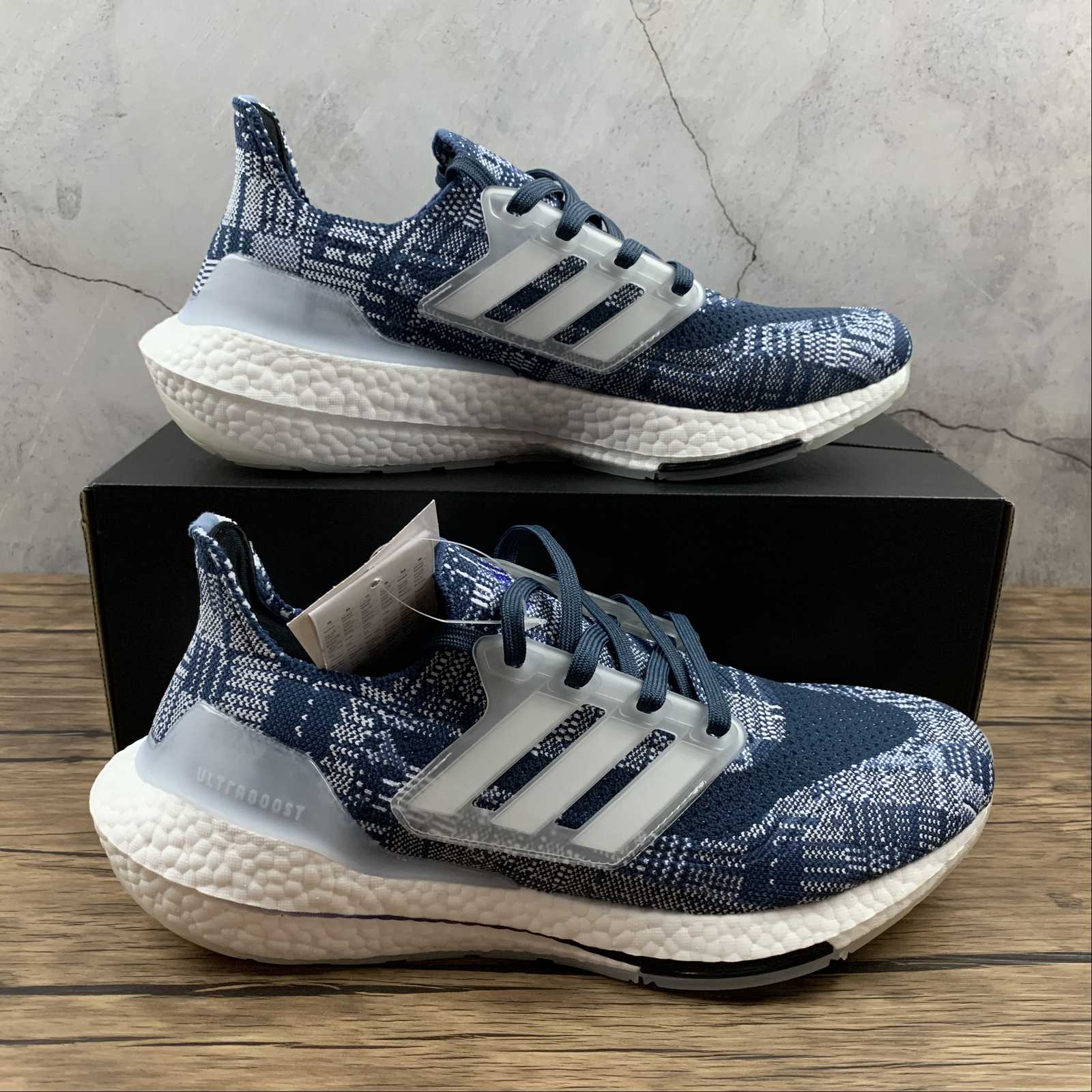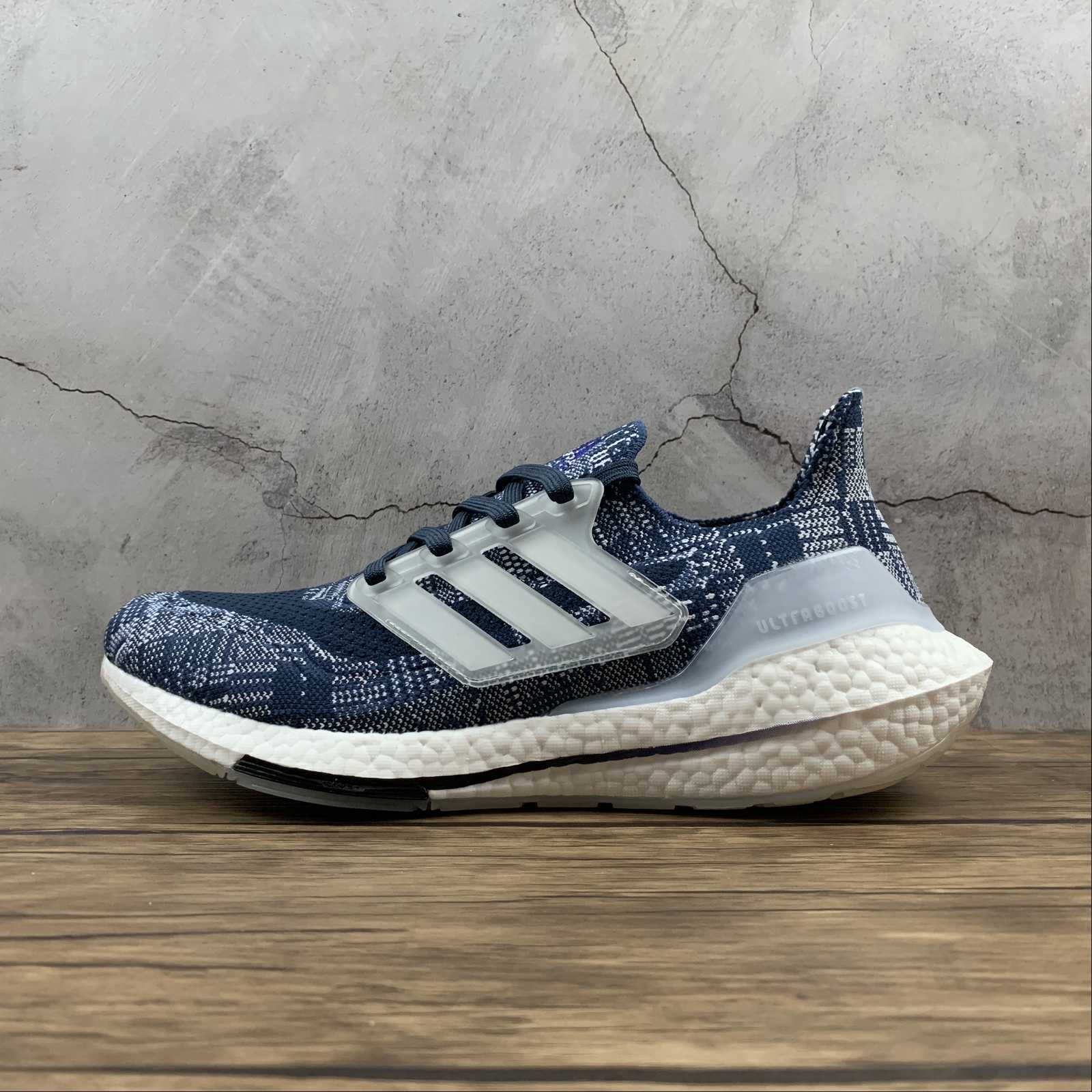 Introducing the adidas UltraBoost 21 Sashiko, a sought-after design from adidas. With its stunning blue color and intricate Sashiko pattern, this shoe is a true standout. The UltraBoost 21 Sashiko features advanced technology for optimal comfort and performance, making it a must-have for athletes and sneaker enthusiasts alike. Elevate your style and step up your game with this iconic adidas creation.
